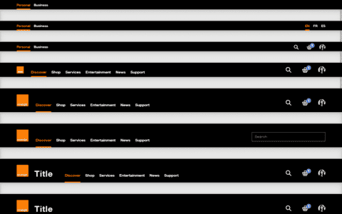 Orange branded title bars to introduce titles.